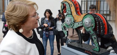 Las 25 curiosas, coloridas y novedosas piezas fueron creadas por reconocidos artistas nacionales en el marco del 12° aniversario de la fundación Chilenter dependiente de la Dirección Socio Cultural de la Presidencia.