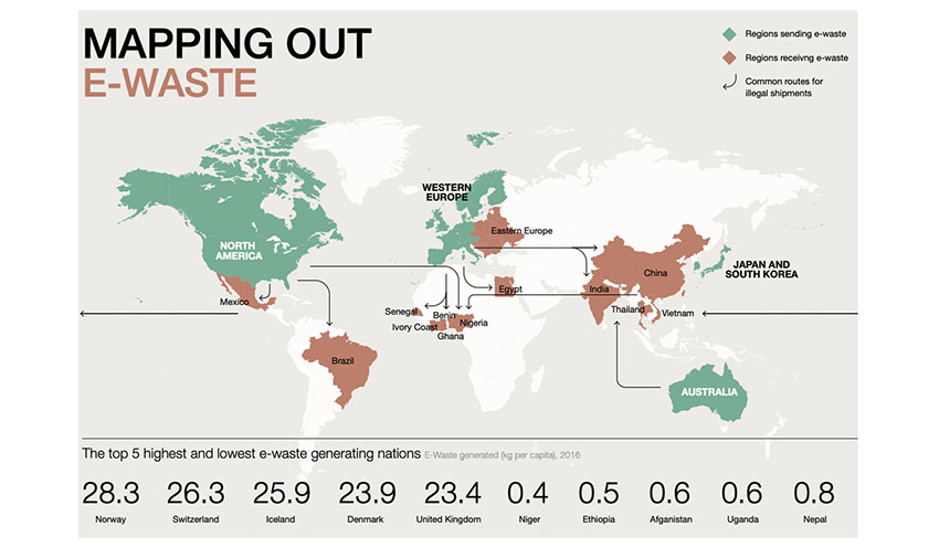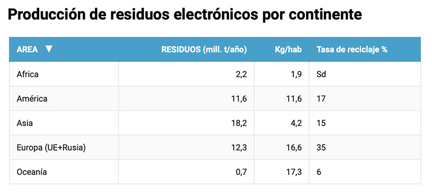 Estas cifras constituyen un problema grave tanto a nivel local como global. Primero, porque estos residuos contienen materiales tóxicos y peligrosos como plomo, cadmio, mercurio, níquel, litio y gases fluorados de refrigeración. Segundo, porque la composición y tipología de los residuos varía de un país a otro en función de sus pautas de consumo o necesidades. Y tercero, porque no se conoce bien la cantidad real de residuos que se generan ni a dónde van a parar. De los 67 países que tienen una legislación al respecto, tan solo 41 recopilan esta información y, a veces, ni siquiera es fiable.