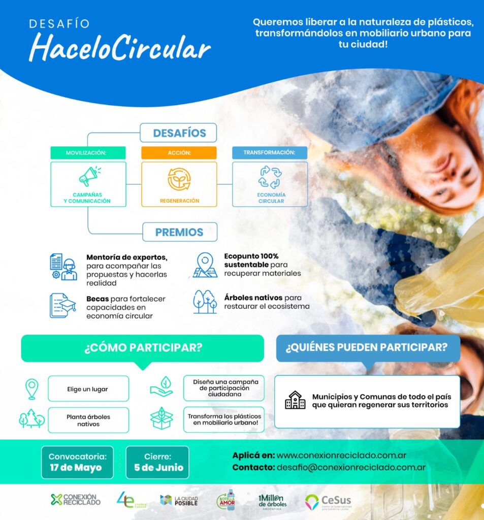 | Una oportunidad para, juntos, TRANSFORMAR LA REALIDADCon este contexto, nace la convocatoria abierta al desafío #Hacelo Circular, cuyo propósito ha sido acompañar proyectos regenerativos en espacios públicos de valor social y ambiental. Las iniciativas presentadas por municipios de todo el país, debieron contemplar la elección estratégica de un área natural de alto valor -ecosistémico, estético, recreativo y social para la comunidad local-, el diseño de una campaña de sensibilización y movilización ciudadana -para recuperar residuos y, especialmente, plásticos de un solo uso-, la planificación de acciones de restauración ambiental -forestación con especies nativas, delimitación de zonas de restauración, puesta en valor, interpretación ambiental-, y la articulación con acciones de economía circular y gestión integral de residuos -destino de los materiales recuperados, inclusión de recicladores y recuperadores urbanos, y transformación de los materiales en nuevos productos con impacto positivo-. La cantidad de proyectos que se han presentado muestra la preocupación de las gestiones municipal por poner en valor espacios públicos degradados, y mejorar la gestión de residuos”, afirmó Alejandro Jurado. Se seleccionaron once proyectos finalistas, de los cuales el jurado seleccionó cuatro iniciativas ganadoras, basándose en un análisis del abordaje integral de los ejes de movilización, transformación y restauración. |