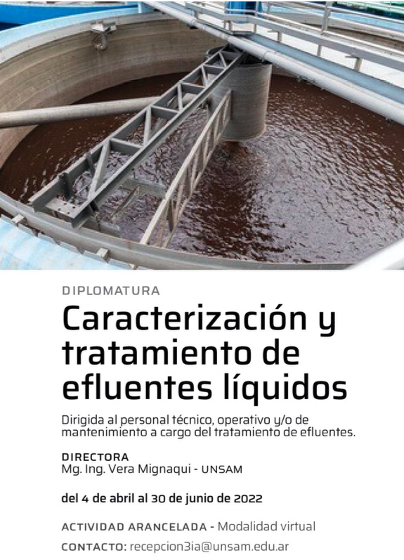 DIPLOMATURA EN CARACTERIZACIÓN Y TRATAMIENTO DE EFLUENTES LÍQUIDOS. El motivo de este email es invitarlos a participar y solicitarles su colaboración en la difusión a personas que les parezca, les pueda resultar de interés.